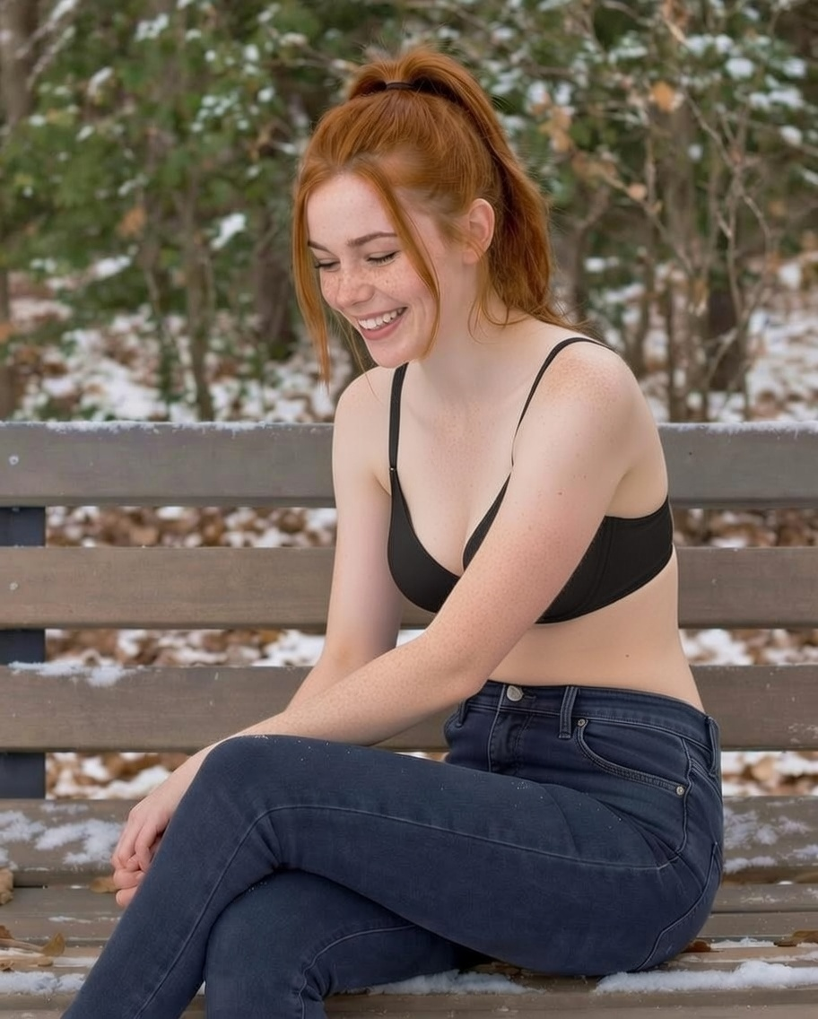 Она сглотнула. Пальцы дрожали, когда тянули молнию толстовки. Под ней — только тонкий чёрный спортивный топ. Потом и он полетел на пол. Грудь обнажилась — небольшая, упругая, с тёмно-розовыми сосками, которые уже предательски напряглись от смеси страха и странного возбуждения...